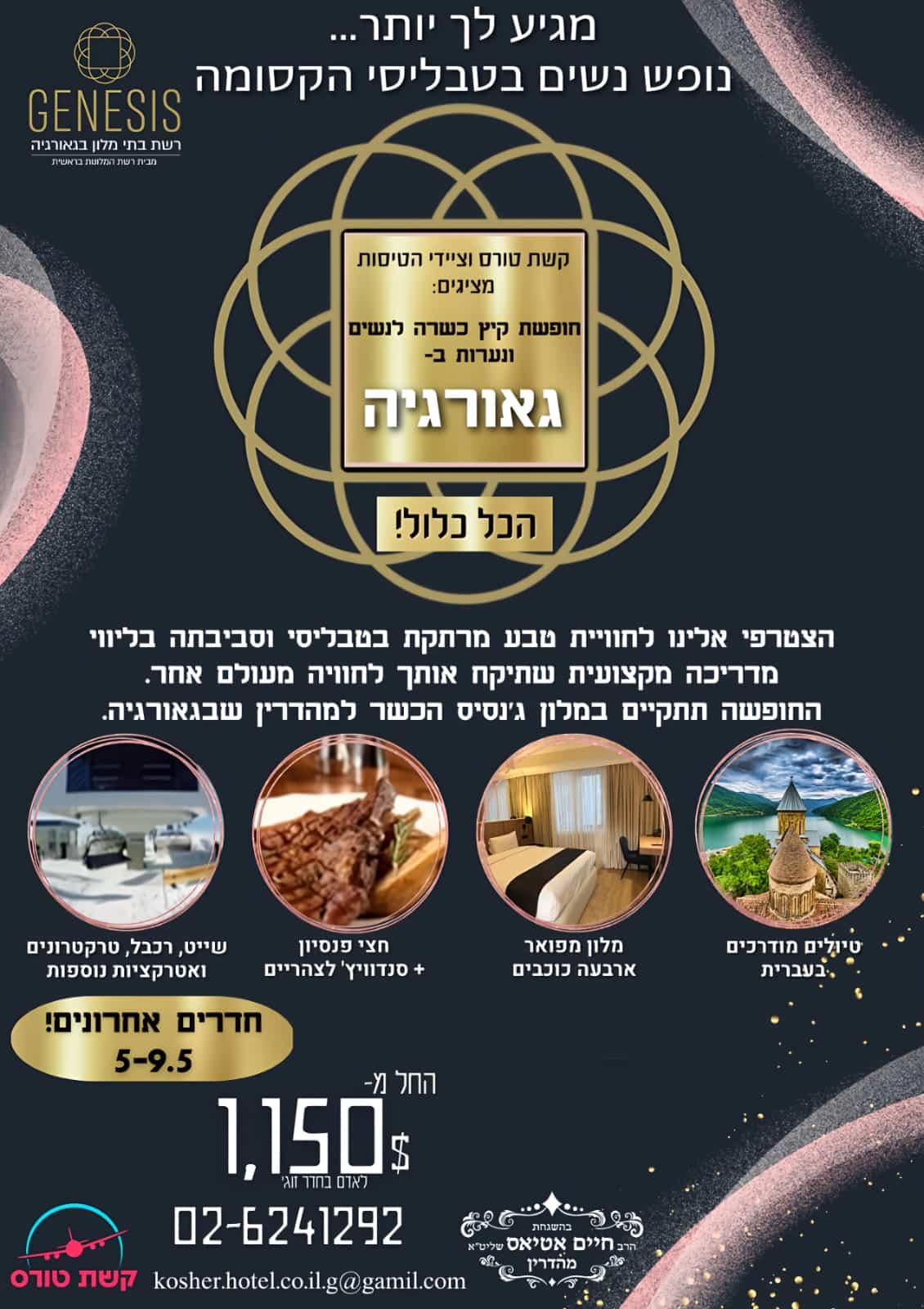 החופשה תתקיים במלון ג'נסיס הכשר למהדרין שבגאורגיה.
