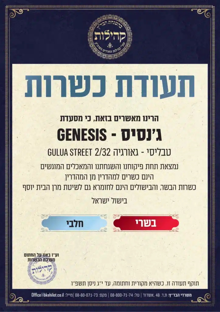 אם חיפשתם מקום לשבת בו בנחת, ליהנות מארוחה חלבית מושקעת עם כשרות מהודרת – ברוכים הבאים ל"בראשית", המסעדה החלבית של מלון ג’נסיס בלב טביליסי.